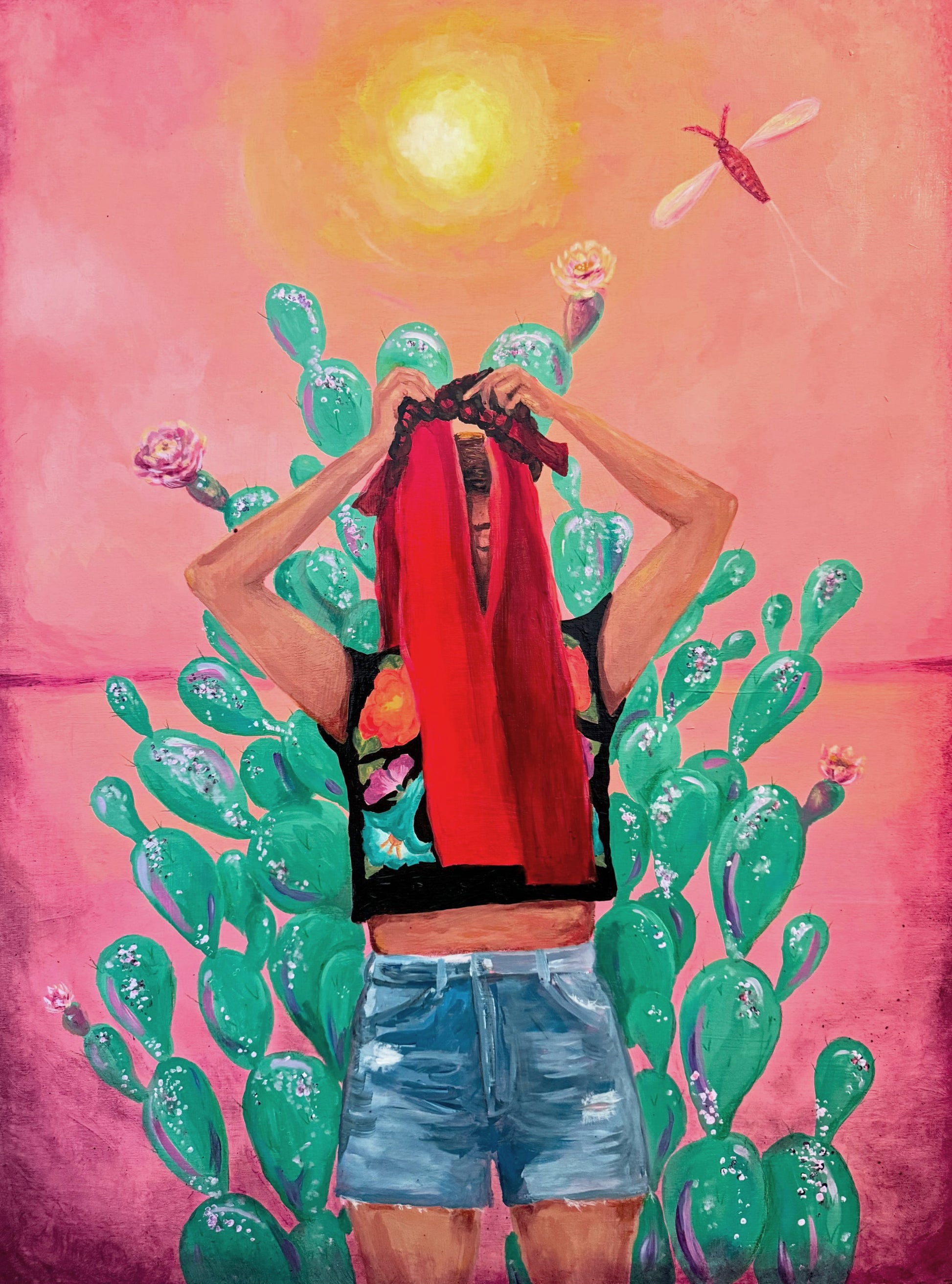Medium: Acrylic and cochineal on wood panel